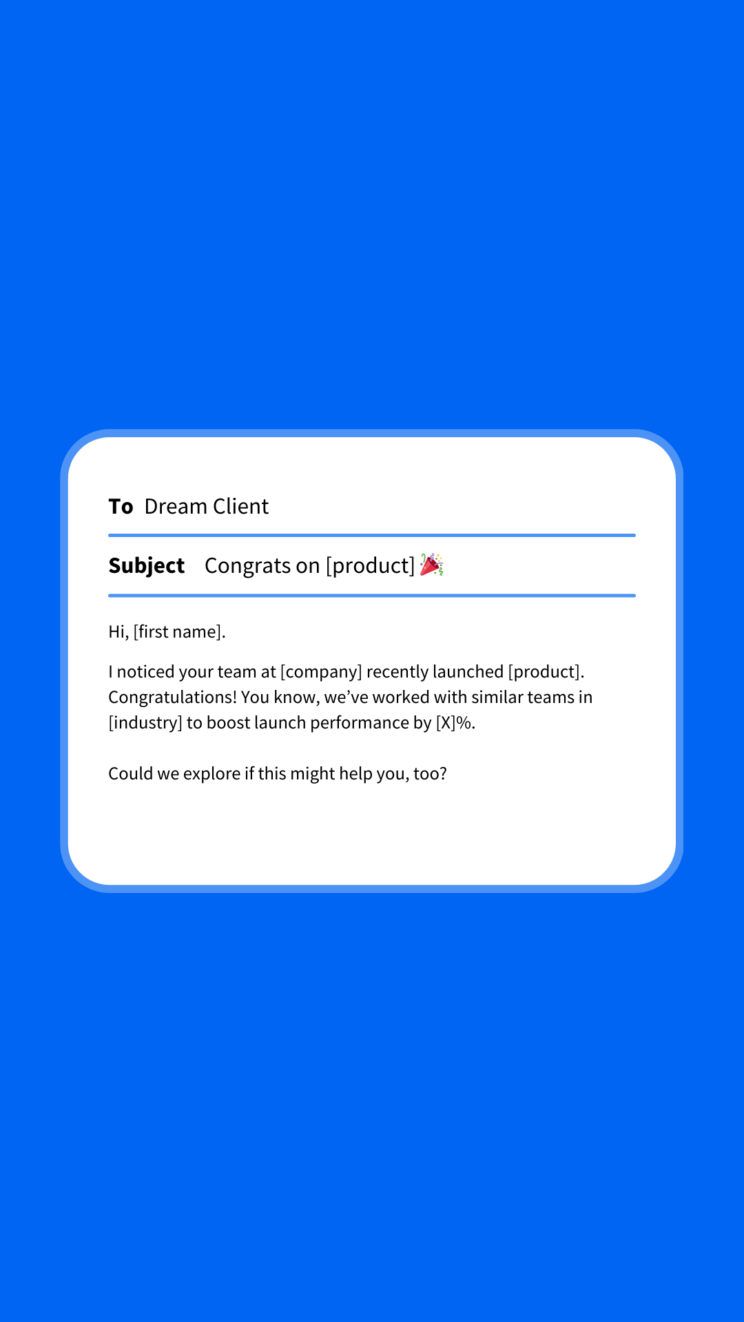 I noticed your team at [company] recently launched [product]. Congratulations! You know, we’ve worked with similar teams in [industry] to boost launch performance by [X]%.