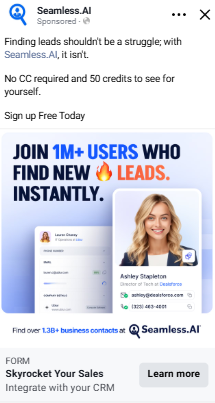 - Paid media campaigns. The first sample ad is a part of a recent campaign our paid media team ran on Meta (Facebook + Instagram). It generated 500+ leads at a cost-per-click (CPC) of less than $4.